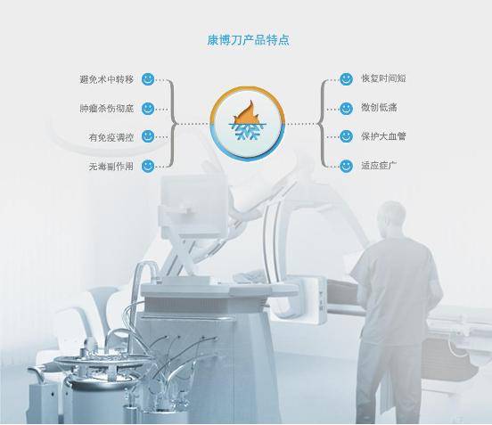 随着医疗设备的不断进步,2017年海杰亚(北京)医疗器械公司出品的“康博刀”上市后,打破了美国、以色列在肿瘤低温治疗领域的长期垄断。“康博刀”是经10多年科技攻关研制出的复合式低温冷冻手术系统,是中国首创的具有完整自主知识产权的高端肿瘤微创治疗设备。一根直径约为2毫米左右的消融针,既能在人体内迅速降温至零下196℃喷出“冰球”,包围、杀掉瘤组织,又能在五分钟内迅速升温至80℃,降低术后出血风险。